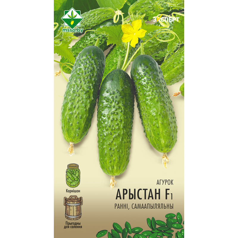 Ранний гибрид корнишонного типа голландской селекции. Период от всходов до плодоношения 44-48 дней. Высокоурожайный, партенокарпический (самоопыляемый), с пучковым образованием завязи. Плоды темно-зеленого цвета, цилиндрической формы, выравненные, крупнобугорчатые, хрустящие, без горечи. Дегустационная оценка свежей продукции 5,0 баллов. Для потребления в свежем виде, консервирования и засолки. Рекомендован для открытого и защищенного грунта. Качество семян проверено и соответствует Постановлению МСХиП РБ №37 от 29.10.2015г.