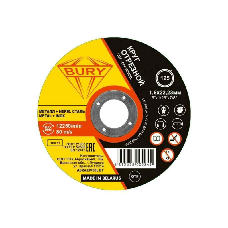 Диск отрезной BURY 125х1,6 мм – это надежный выбор для профессионалов, которым важна долговечность, точность и качество при резке металла и нержавеющей стали.