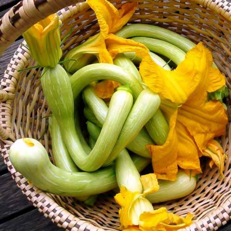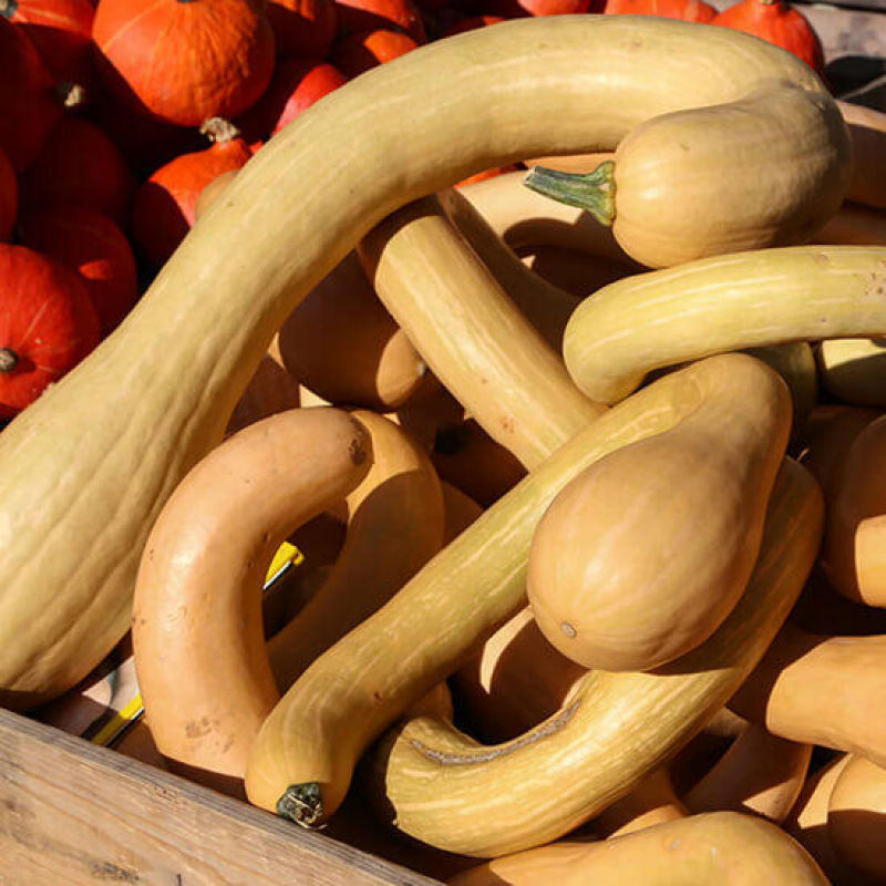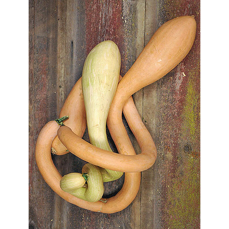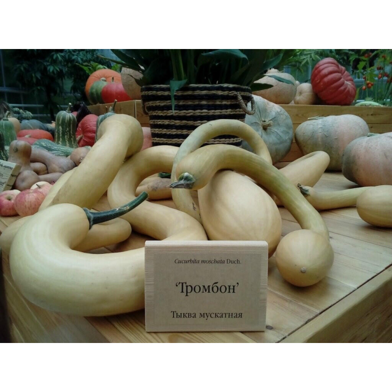 Плод необычной формы, длинный, причудливо закрученный. Ярко-оранжевая мякоть и небольшое семенное гнездо. Очень вкусная тыква. Может храниться больше года без потери качества.
