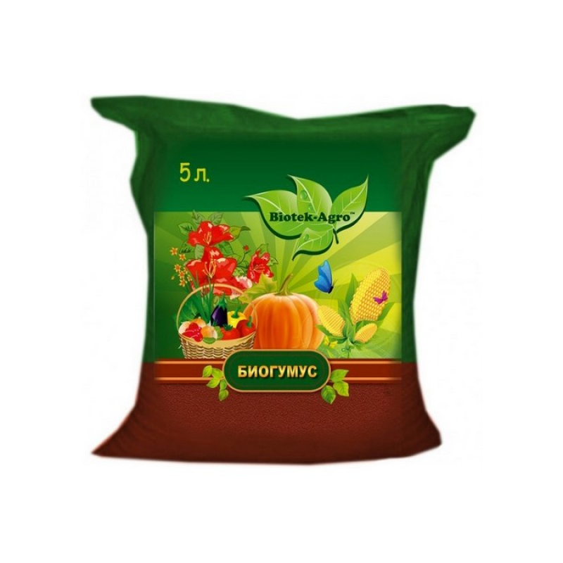 Биогумус органическое комплексное удобрение, продукт переработки навоза крупного рогатого скота красным калифорнийским дождевым червём. Содержит в сбалансированном сочетании комплекс необходимых питательных веществ и микроэлементов, ферменты, почвенные микроорганизмы, гуминовые вещества, витамины. Это также и микробиологическое удобрение, в нем обитает уникальное сообщество микроорганизмов, создающих почвенное плодородие, не содержит патогенной микрофлоры, яиц и коконов паразитов и вредителей. Биогумус используется как основное органическое удобрение при посадке, подкормке всех видов сельхозкультур, в лесоводстве, цветоводстве. Вносить биогумус в открытый грунт можно с ранней весны и до поздней осени. Биогумус представляет собой сыпучую гранулированную массу темного цвета и предназначен для применения в сельскохозяйственном производстве, садоводстве, цветоводстве, для выращивания рассады овощных и цветочных культур, на приусадебных участках в качестве органического удобрения и как компонент для приготовления почвенных смесей и удобрений. Биогумус обеспечивает полное питание растения в процессе его вегетации после высадки в грунт. Удобрение структуризирует почву, связывает в комплексы элементы полезные для роста растений, а также закрывает в нерастворимые соединения тяжёлые металлы и радионуклиды. Способствует созданию нейтрального кислотно-щелочного баланса почвы, благодаря отличным физико-химическими показателями. Бактерии, живущие в биогумусе обладают хитиназной активностью, поэтому вредители, имеющие хитинный покров (колорадский жук), в почве удобренной биогумусом, погибают. Удобрение имеет пролонгированное действие, не уходит с водой в грунтовые воды и не вымывается при паводке. Высокое содержание в удобрении гумуса и полезных элементов при абсолютной экологической чистоте и отсутствии яиц гельминтов, патогенной микрофлоры, в том числе сальмонелл, а также цист кишечных патогенных простейших, делает его неизменным и единственным в своём роде удобрением для активного роста растений, созревания плодов и повышения плодородия почвы, её структуризации и влагоудержания.