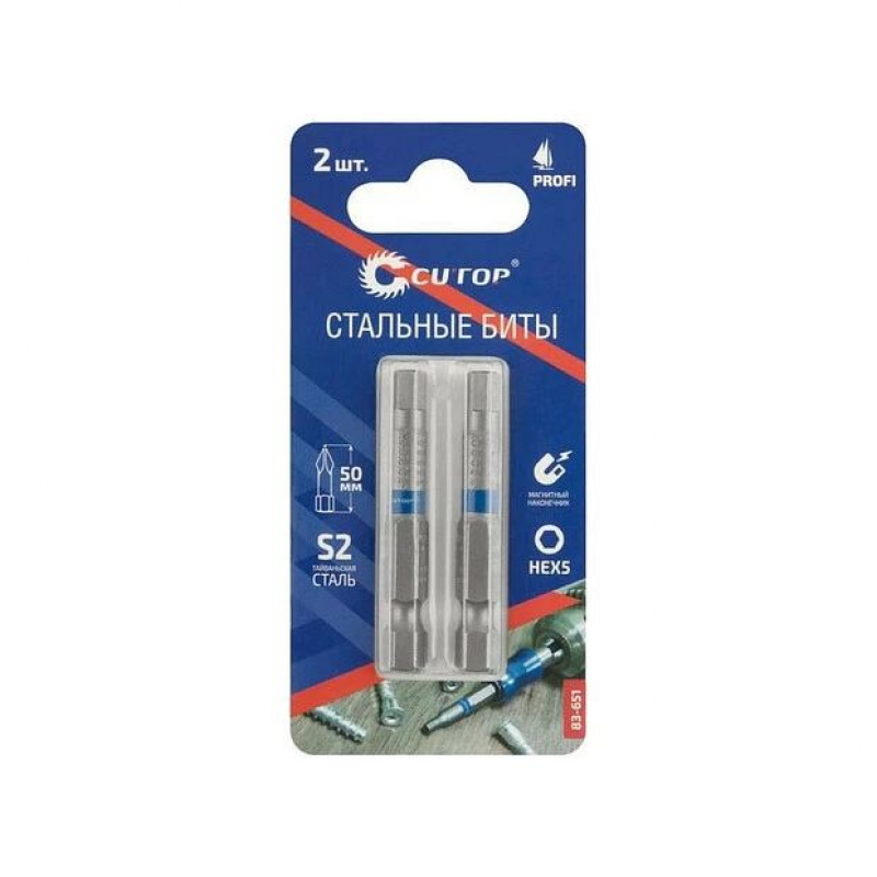 Набор стальных бит Profi (2 шт; PZ2; 50 мм) CUTOP 83-345 предназначен для шуруповертов и гайковертов. Биты произведены по технологии CUTOP, ресурс от 2000 шт. саморезов. Ребра биты производятся с помощью холодной штамповки, кончик проходит специальный процесс закалки при температурах до 870°C, что увеличивает срок службы и обеспечивает высокую точность.