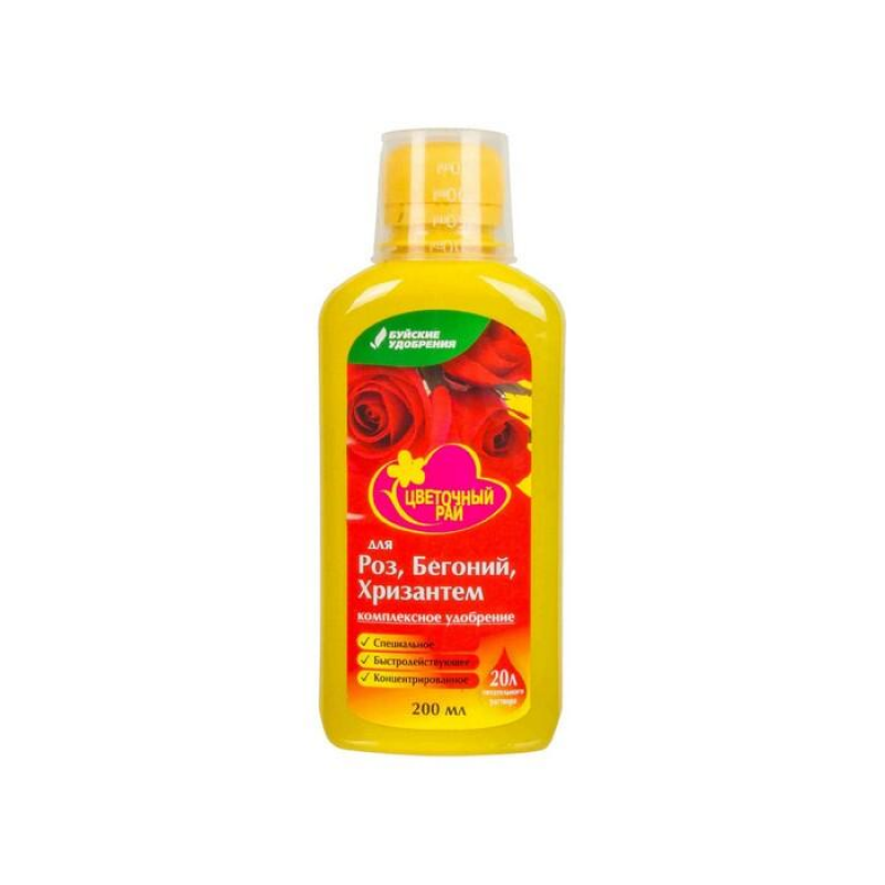 Специальное быстродействующее концентрированное комплексное жидкое удобрение для питания роз, бегоний, хризантем. Способствует здоровому росту и развитию растений. Стимулирует развитие побегов и листового аппарата, полноценное и длительное цветение. Доза применения препарата: 10 мл концентрата на 1 л воды,корневые подкормки (путем полива) проводят: в летний период (с марта по сентябрь) - 1 раз в 7-10 дней; в зимний период - 1 раз в месяц; некорневые подкормки (опрыскивание растений) проводят: 1 раз в месяц;расход рабочего раствора на одну подкормку соответствует одной поливочной норме и зависит от размера зеленой массы и вида растений. Преимущества: улучшает качество цветов – они приобретают более сочную окраску, величивается число бутонов в период цветения, питательные веществ легко усваиваются; повышается устойчивость растений к болезням, вредителям и неблагоприятным условиям внешней среды.