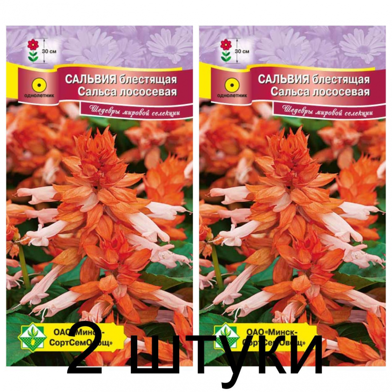 Однолетнее растение высотой около 30 см. Лососевые соцветия-кисти словно парят над темно-зеленой ажурной листвой, придавая неповторимое очарование клумбам, рабаткам, делают сальвию незаменимой участницей парада цветов в саду. Цветет очень обильно, ярко и продолжительно. Семена на рассаду высевают в марте. В открытый грунт рассаду высаживают с конца мая. Светолюбима, но выносит и легкую полутень.Качество семян соответствует ГОСТу 12260-81 и Постановлению МСХП РБ от 29.10.2015г. №37.