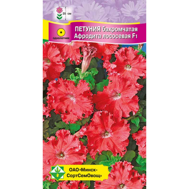 Продолжительно и обильно цветущее однолетнее растение высотой около 35 см. Цветки лососевой окраски, в диаметре 8-9 см, с волнистыми бахромчатыми краями, будто взволновалось море, из которого вышла богиня. Великолепна для цветников, украшения балконов и окон. При посадке в цветочные ящики образует небольшой каскад. Посев на рассаду производят в конце марта - начале апреля. Семена не присыпают, а слегка вдавливают в рыхлую влажную почву, посадочную ёмкость накрывают стеклом или пленкой.Качество семян соответствует ГОСТу 12260-81 и Постановлению МСХП РБ от 29.10.2015г. №37.