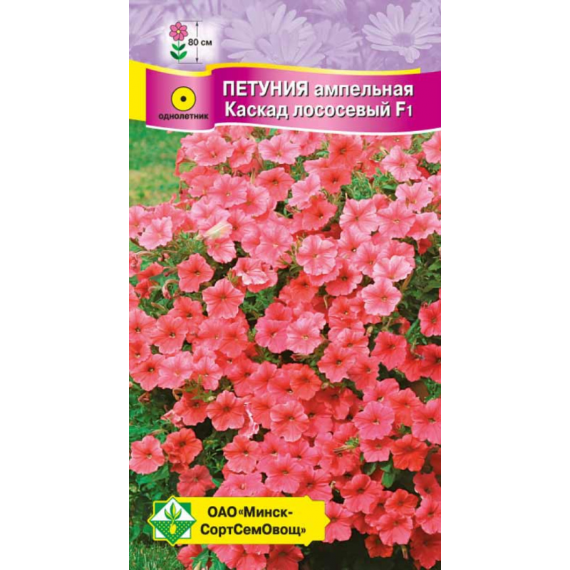 Однолетнее продолжительно и пышно цветущее растение с гибкими побегами длиной около 80 см. Сплошь усыпанные цветками побеги каскадом ниспадают вниз. Цветки лососевой окраски, в диаметре 6-7 см. Идеальное украшение для балконов, кашпо, при посадке в цветниках образует плотный цветочный ковер. При посеве семена не присыпают, а слегка вдавливают в почву. Солнце, тепло, достаточное увлажнение и регулярные подкормки положительно влияют на качество цветения и длину побегов.Качество семян соответствует ГОСТу 12260-81 и Постановлению МСХП РБ от 29.10.2015г. №37.