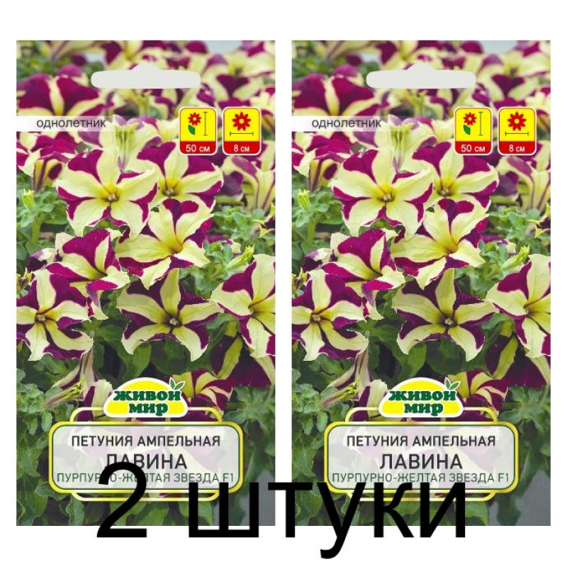 Цветки двуцветные, с новым для петуний сочетанием желтой и пурпурной расцветок, крупные, диаметром 7–9 см. Цветение очень обильное.