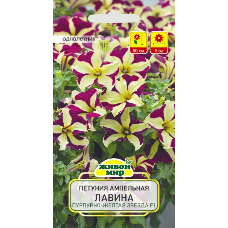 Цветки двуцветные, с новым для петуний сочетанием желтой и пурпурной расцветок, крупные, диаметром 7–9 см. Цветение очень обильное.