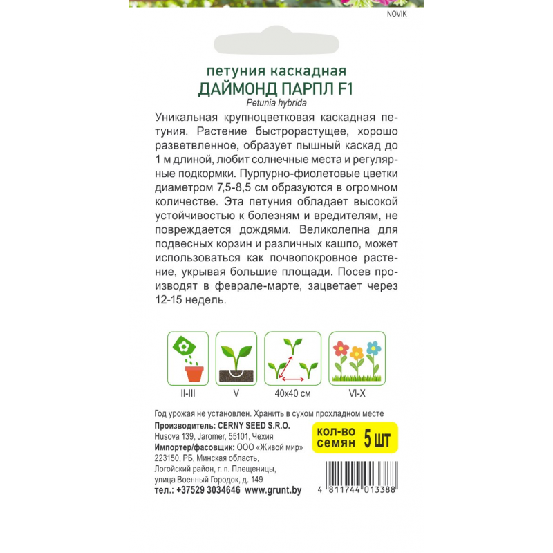 Растение быстрорастущее, хорошо разветвленное, образует пышный каскад до 1 м длиной, любит солнечные места и регулярные подкормки.
