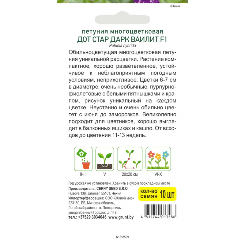 Неустанно и очень обильно цветет с июня до заморозков. Великолепно подходит для цветников, хорошо выглядит в балконных ящиках и кашпо. От всходов до цветения 11-13 недель.