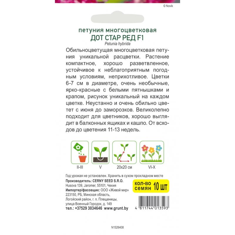 Неустанно и очень обильно цветет с июня до заморозков. Великолепно подходит для цветников, хорошо выглядит в балконных ящиках и кашпо. От всходов до цветения 11-13 недель.