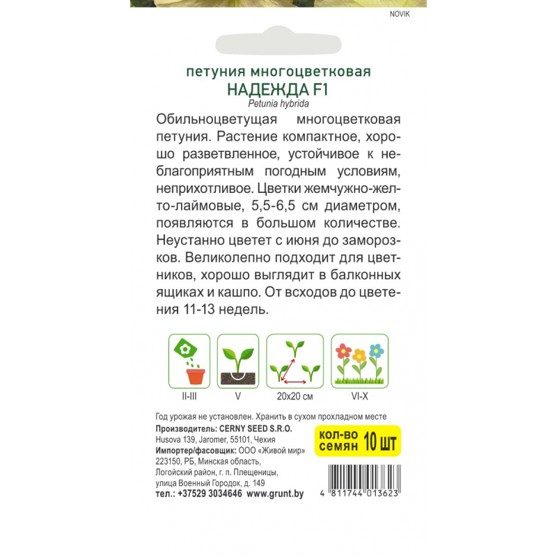 Неустанно цветет с июня до заморозков. Великолепно подходит для цветников, хорошо выглядит в балконных ящиках и кашпо. От всходов до цветения 11-13 недель.