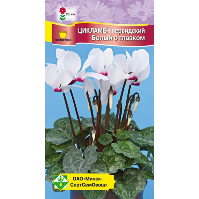Изящное растение с цветоносами высотой до 25 см. Цветки крупные, оригинальной формы, белые с красным глазком. Листья сердцевидные, зеленые с серебристым рисунком. Семена высевают в январе-марте. Всходы появляются на 30-35 день. Через 5 месяцев рассаживают в горшки диаметром 10-12 см с питательной рыхлой почвой. Полив умеренный. Светолюбив, но плохо переносит прямые солнечные лучи. Цветет в холодную пору года в течение нескольких лет.Качество семян соответствует ГОСТу 12420-81 и Постановлению МСХП РБ от 29.10.2015г. №37.