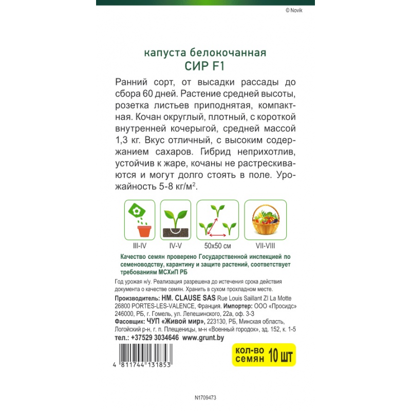 Гибрид неприхотлив, устойчив к жаре, кочаны не растрескиваются и могут долго стоять в поле. Урожайность 5-8 кг/кв.м.
