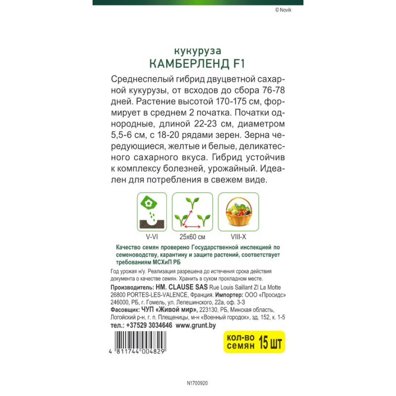 Среднеспелый гибрид двуцветной сахарной кукурузы, от всходов до сбора 76-78 дней.