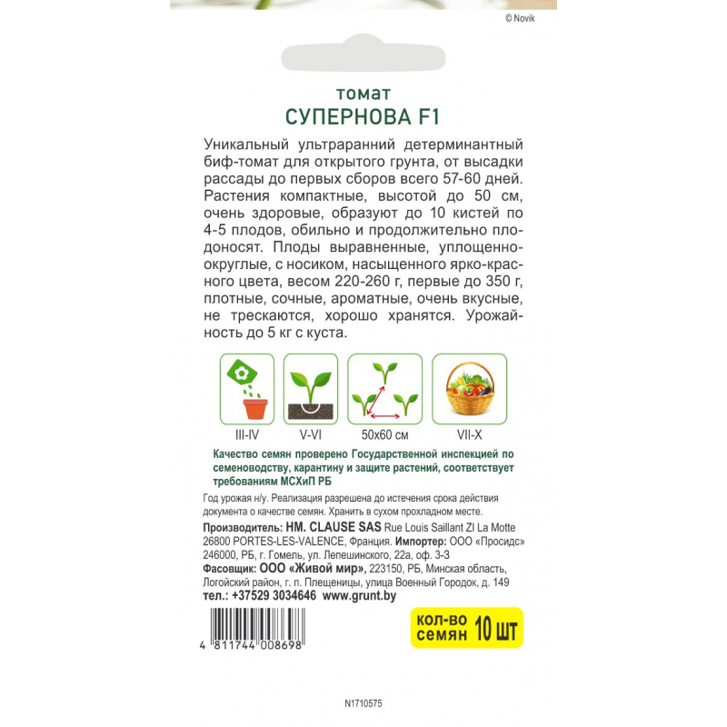 Уникальный ультраранний детерминантный биф-томат для открытого грунта, от высадки рассады до первых сборов всего 57-60 дней.