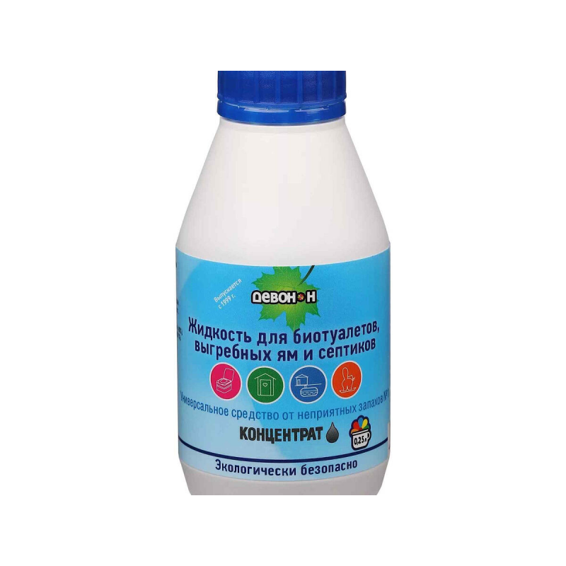Жидкий концентрат Девон-Н уничтожает неприятные запахи (фекальные, рвотные и др.), разжижает отходы в выгребных ямах и септиках, способствует их биоразложению с уменьшением объема. На основе нитратного окислителя (азотного удобрения). Не содержит формальдегида, кислот, щелочей, ЧАС.