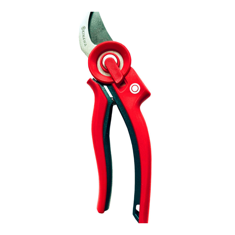 Плоскостной секатор OKINAWA 2341 с храповым механизмом и рычажным приводом. Длина 22 см, максимальный диаметр реза 18 мм. Рукоять из пластика, режущая часть из стали S50C. Произведен в Тайване, вес 0.17 кг.