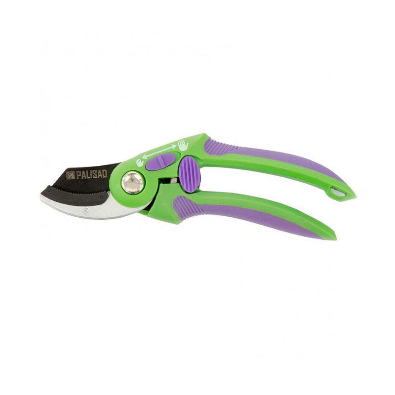 Профессиональный контактный секатор PALISAD 60486 с храповым механизмом. Максимальный диаметр реза: 20 мм. Длина: 21 см. Рукоятки из ударопрочного пластика, режущая часть из высококачественной стали. Вес: 0.233 кг.