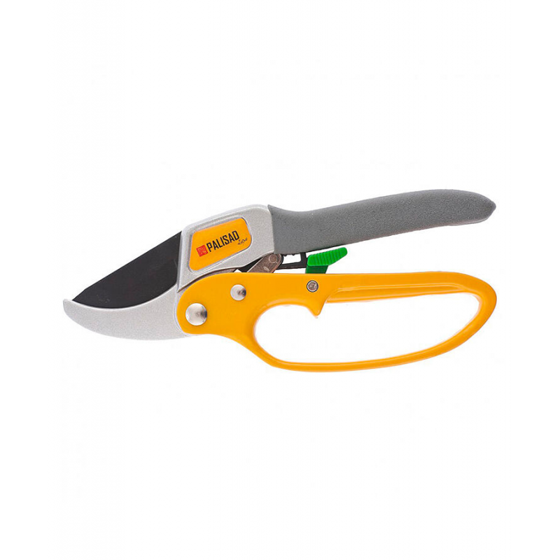 Секатор PALISAD 60488 с плоскостной заточкой и храповым механизмом. Предназначен для резки веток диаметром до 20 мм. Общая длина инструмента 20 см. Изготовлен из прочной стали (режущая часть) и алюминия (рукояти). Произведен MATRIZE Handels GmbH в Китае.