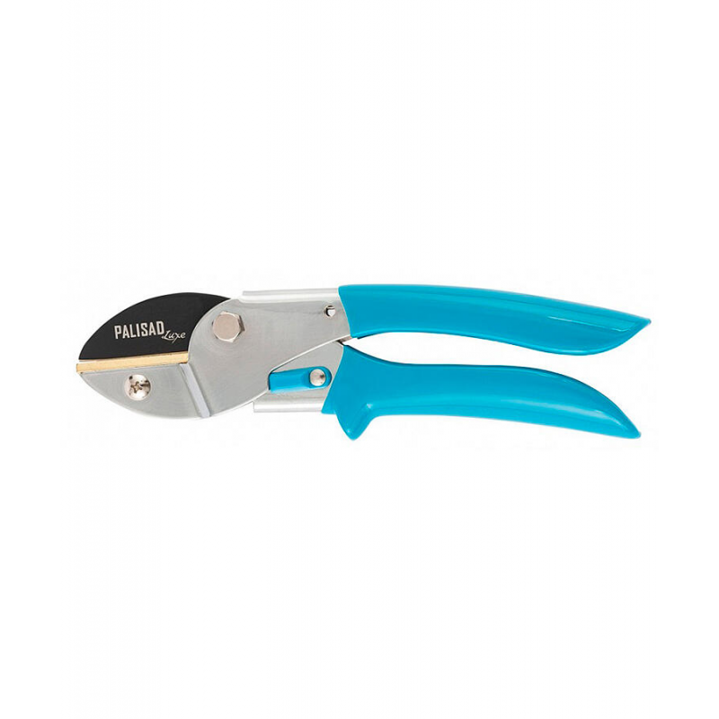 Секатор PALISAD Luxe 605245 контактного типа для профессионального использования. Режет ветви до 20 мм диаметром. Длина инструмента 20 см. Оснащен храповым рычажным механизмом. Рукоять из алюминия, режущая часть из высококачественной стали. Вес 358 г.