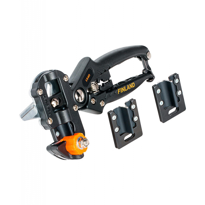 Прививочный секатор FINLAND 1540 со сменными лезвиями (2 шт). Максимальный диаметр среза: 10 мм. Длина: 21 см. Оснащен храповым механизмом и рычажной системой. Рукоять из композитного материала, лезвия из стали SK5.