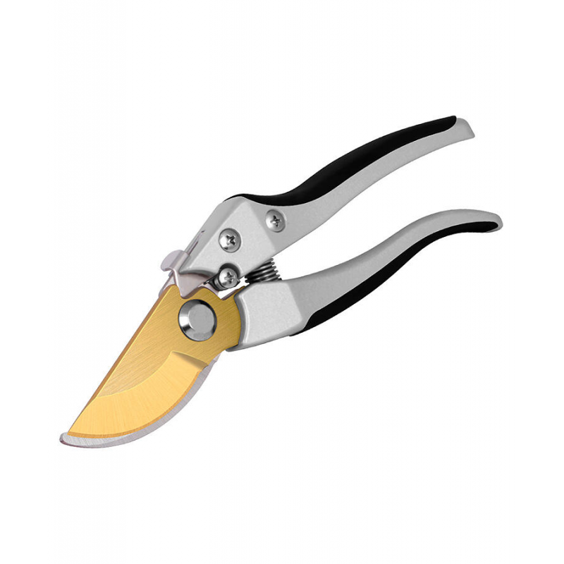 Секатор ЦИ Titanium 1381 плоскостной. Максимальный диаметр реза: 18 мм. Общая длина: 20 см. Храповый механизм. Рычажный привод. Материал рукояти: алюминий. Материал рабочей части: сталь с титановым покрытием. Вес: 350 г.