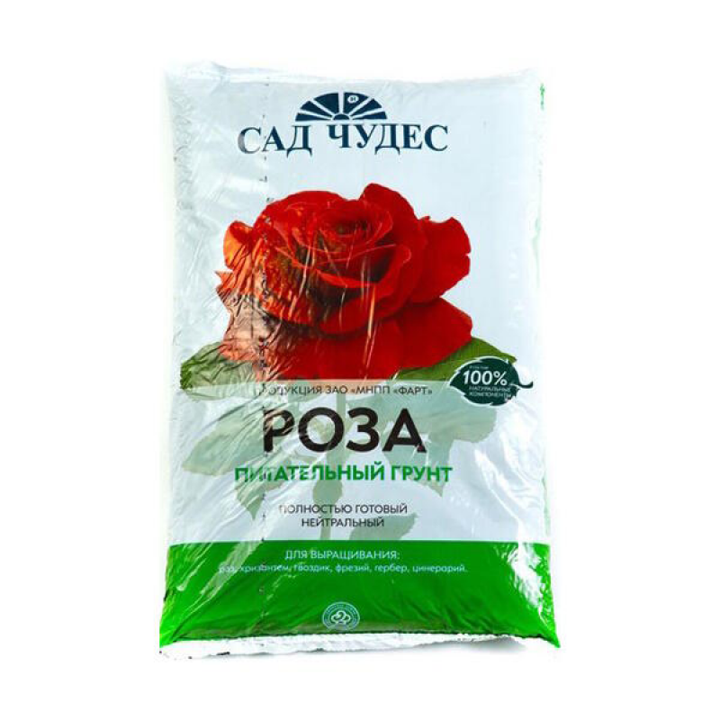 Питательный почвогрунт САД ЧУДЕС Роза специально разработан для выращивания роз и других цветочных культур, таких как хризантемы, гвоздики, герберы и фрезии. Благодаря высокому содержанию гуматов и сбалансированному составу (азот, калий, фосфор) он стимулирует активный рост и развитие растений, улучшает структуру почвы и обеспечивает оптимальное питание. Добавление перлита способствует поддержанию средней плотности грунта, оптимальной аэрации и влагообмена. Универсальное назначение делает его подходящим как для комнатных, так и для садовых цветов. Кислотность (pH 6-6.5) соответствует потребностям большинства декоративных растений. Объем упаковки 2,5 л (вес 1,2 кг) удобен для использования.