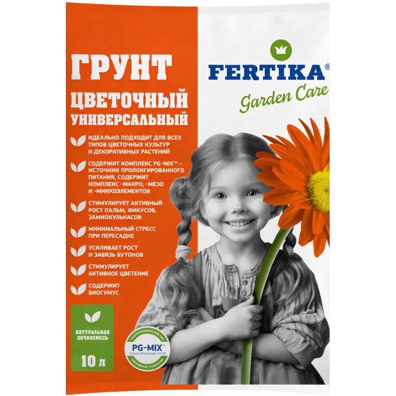 Грунт универсальный Фертика 10л — готовый питательный субстрат на основе сбалансированной смеси верхового и низинного торфа. Содержит перлит для оптимального водно-воздушного баланса, доломитовую муку для нейтральной кислотности (pH 5,5-6,5) и комплексное удобрение PG-MIX с макро-, мезо- и микроэлементами, обеспечивающее пролонгированное питание до 2 месяцев. Идеально подходит для всех видов комнатных и декоративных растений, рассады, пальм, фикусов, замиокулькасов. Способствует активному росту, цветению и формированию бутонов, минимизирует стресс при пересадке. Грунт стерилен, не содержит болезнетворных микроорганизмов и вредителей.