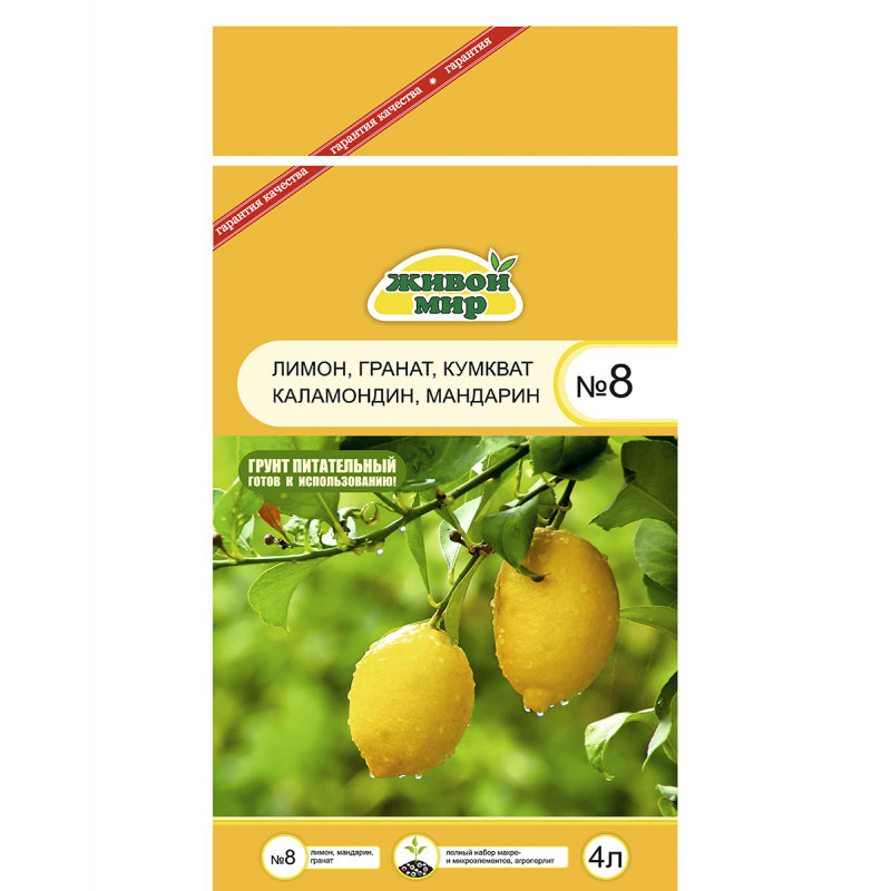 Высококачественный, полностью готовый к применению специальный грунт для выращивания следующих растений: цитрусовые - лимон, мандарин, кумкват, каламондин и другие; банан, гранат, пассифлора, ардизия, соланум, кофе