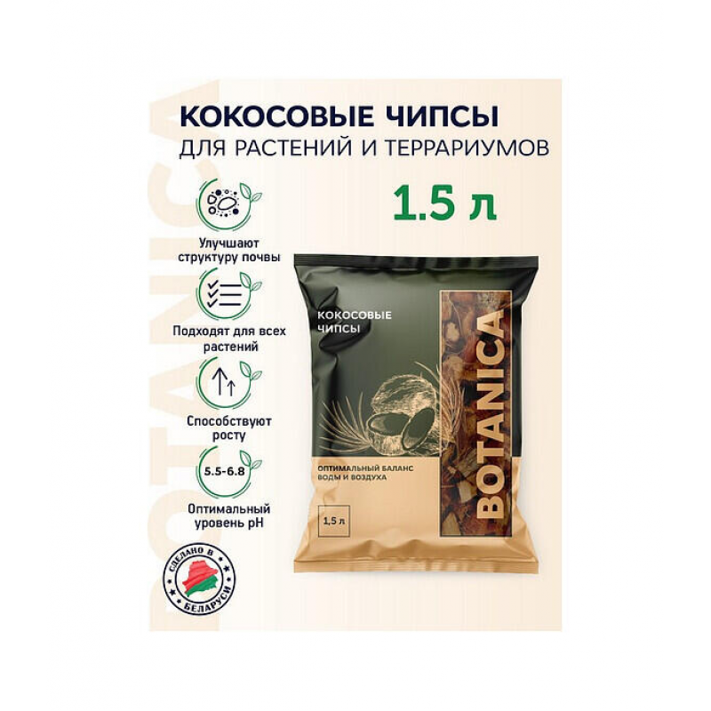 Кокосовые чипсы Botanica — это универсальный субстрат и добавка для грунта, идеально подходящая для выращивания орхидей, фиалок, антуриумов, бромелиевых, ароидных и других комнатных растений. Они улучшают структуру почвы, повышая её рыхлость, водопроницаемость, а также влаго- и воздухообмен. Чипсы нейтральны по pH (5.5-6.9), устойчивы к разложению и сохраняют свои свойства до 5 лет, предотвращая развитие грибков, гнилей и насекомых. Также их можно использовать для мульчирования верхнего слоя почвы, что придаёт декоративный вид, сохраняет тепло и влагу. Объём упаковки — 1,5 литра, вес — 0,07 кг.
