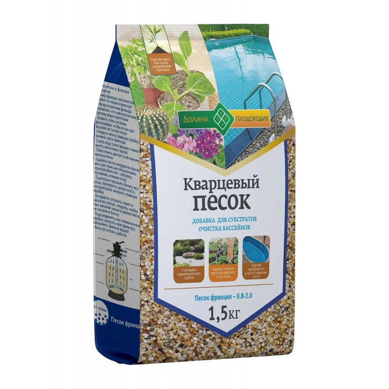 Кварцевый песок Долина плодородия фракцией 0.8-2,0 мм — это высококачественный субстрат, предназначенный для улучшения структуры и свойств грунта. Он эффективно разрыхляет почву, обеспечивая оптимальный влаго-воздушный и водный режимы, что способствует здоровому росту всех видов растений. Песок хорошо прогревается и долго сохраняет тепло, создавая благоприятные условия для корневой системы. Кроме того, он обладает фильтрующими свойствами, удаляя из воды вредные примеси и частицы. Продукт произведен в России, фасовка — 1,5 кг. Идеально подходит для садоводства, комнатного цветоводства и ландшафтных работ.