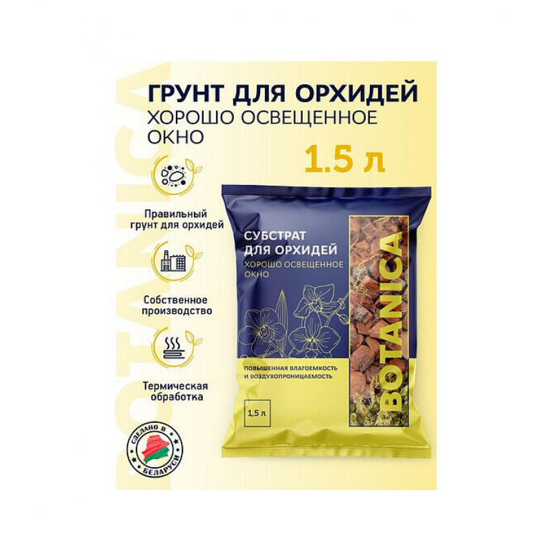 Субстрат Botanica для орхидей «Хорошо освещенное окно» специально разработан для растений, расположенных на ярко освещенных подоконниках. Он обладает повышенной влагоемкостью, что помогает защитить орхидеи от солнечных ожогов, поддерживая оптимальный уровень влаги у корней. Смесь из сосновой коры, кокосовых чипсов, скорлупы кедрового ореха и сфагнума обеспечивает идеальный воздухо- и влагообмен, стимулирует здоровый рост корней и способствует пышному, продолжительному цветению. Этот готовый субстрат объемом 1,5 литра создает идеальные условия для развития орхидей в условиях интенсивного освещения.