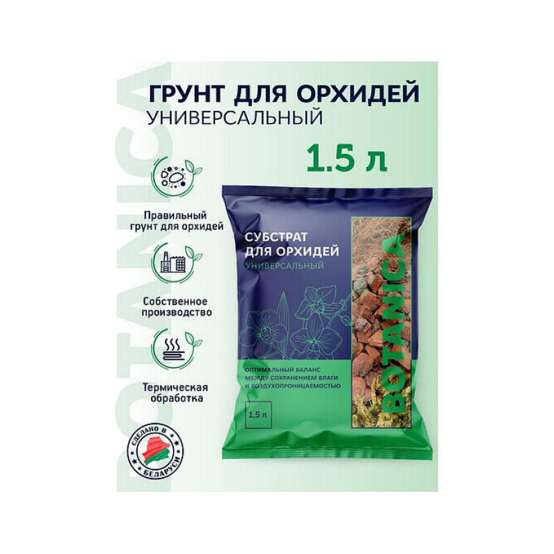 Субстрат Botanica для Орхидей Универсальный создан для обеспечения идеальных условий роста и цветения всех видов орхидей. Его сбалансированный состав из коры сосны, кокосового волокна, сфагнума и древесного угля гарантирует оптимальный баланс влаги и воздухопроницаемости, что стимулирует развитие корневой системы и продлевает период цветения. Субстрат устойчив к разложению, что обеспечивает долговечность и здоровье растения. Рекомендуется для пересадки в период активного роста корней, избегая процедуры во время цветения. Простота применения делает его идеальным выбором как для опытных цветоводов, так и для новичков.