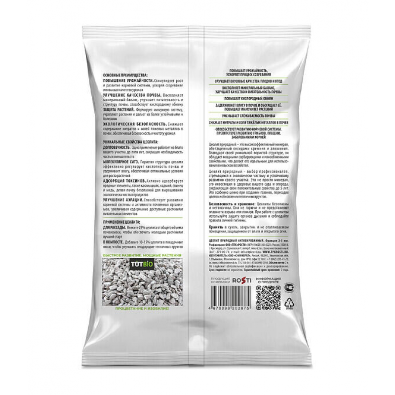 Цеолит TUT BIO — натуральный минерал вулканического происхождения, который станет незаменимым помощником в вашем саду и огороде. Его уникальные свойства помогают поддерживать оптимальный уровень влажности почвы, так как цеолит способен поглощать и постепенно отдавать влагу растениям. Минерал обогащен полезными микроэлементами (калий, кальций, магний), необходимыми для здорового роста овощей, ягод и цветов. Он также нормализует кислотность почвы и улучшает её структуру, делая её более рыхлой и воздухопроницаемой. Благодаря этому корневая система развивается лучше, а урожайность повышается. Цеолит абсолютно безопасен для людей, животных и окружающей среды, а его действие сохраняется на протяжении нескольких лет после внесения в почву.