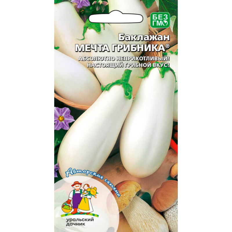 Баклажан Мечта грибника - уникальный раннеспелый сорт с настоящим грибным вкусом и ароматом. Этот абсолютно неприхотливый сорт отличается удивительной урожайностью и подходит для выращивания как в открытом, так и в закрытом грунте. Растение компактное, высотой всего 50-70 см, что делает его идеальным для небольших участков. Плоды овальной формы, белоснежного цвета с тонкой кожицей, массой до 250 грамм. Мякоть белая, очень нежная, без малейшей горечи, с отменным вкусом и тонким грибным ароматом. Сорт обладает исключительной устойчивостью к болезням и отлично завязывает плоды даже при недостатке солнечного света и тепла. Растения не только продуктивны, но и декоративны - они усыпаны крупными ярко-фиалковыми цветками, а созревающие молочно-белые плоды выглядят необычно и привлекательно. Идеален для продолжительного хранения и всех видов кулинарной обработки.