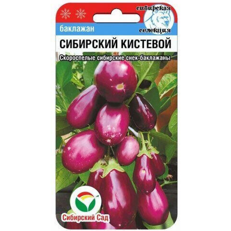 Сибирский кистевой баклажан - оригинальный скороспелый сорт сибирской селекции с уникальной кистевой формой соцветия. Созревает на 7-10 дней раньше самых скороспелых сортов сибирской зоны, что делает его идеальным выбором для регионов с коротким летом. Куст компактный, высотой 40-50 см, формирует красивые кисти с ярко-лиловыми плодами массой 100-150 г, которые плотно расположены на растении. Мякоть плодов белая, нежнейшая, без огрубления кожицы и совершенно без горечи, что обеспечивает превосходные вкусовые качества. Созревание плодов дружное, требует регулярного сбора, не допуская перезревания семян в мякоти. Плоды этого сорта особенно удобны для цельноплодного консервирования, запекания и сушки. Урожайность высокая - до 5,5 кг с квадратного метра, что делает сорт экономически выгодным для выращивания. Отличный выбор для любителей ранних урожаев и компактных растений.