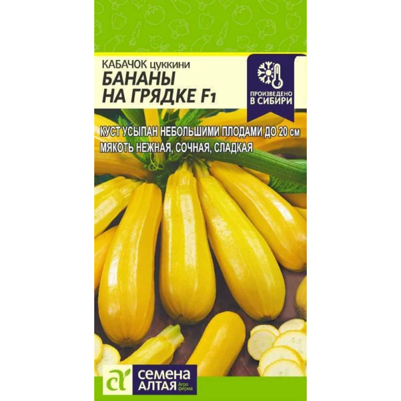 Раннеспелый гибрид кабачка Бананы на Грядке F1 от компании "Семена Алтая" - отличный выбор для получения обильного урожая золотисто-желтых плодов. Гибрид созревает всего за 38-45 дней, что позволяет получить раннюю продукцию. Растение мощное, кустовое и компактное, что делает его удобным для выращивания даже на небольших участках. Плоды цилиндрической формы, гладкие и выравненные, достигают длины 18-20 см и массы 0,6-0,8 кг. Мякоть кремово-желтого цвета, нежная, сладковатая и сочная, что делает кабачки идеальными для различных кулинарных целей. Гибрид отличается высокой завязываемостью плодов и показывает стабильные результаты во всех климатических зонах России. Урожайность достигает впечатляющих 7,5-9,2 кг с квадратного метра. Кабачки подходят как для домашней кулинарии, так и для консервирования, сохраняя свои вкусовые качества при любой обработке.