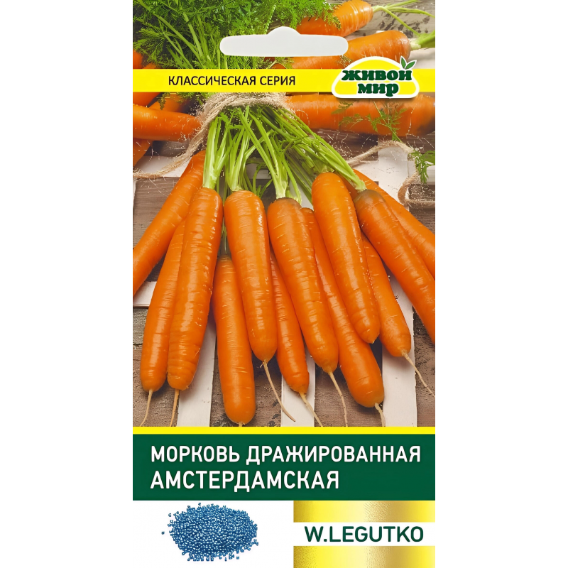 Раннеспелый сорт моркови Амстердамская в удобной дражированной форме для точного посева. Семена покрыты специальной оболочкой, которая обеспечивает равномерное распределение при посадке и содержит питательные вещества для лучшего старта растений. Сорт отличается коротким вегетационным периодом - всего 80 дней от всходов до сбора урожая. Корнеплоды имеют классическую цилиндрическую форму длиной 15-17 см с ярко-оранжевой, сочной и сладкой мякотью. Идеально подходит для получения ранней витаминной продукции. Морковь Амстердамская универсального назначения: используется для сбора пучками в молодом возрасте, для длительного хранения в зимний период, а также прекрасно подходит для домашней кулинарии - приготовления свежих салатов, супов, гарниров и консервации. Урожайность составляет 3-5 кг с квадратного метра. Произведено в Беларуси, масса упаковки 6 г.