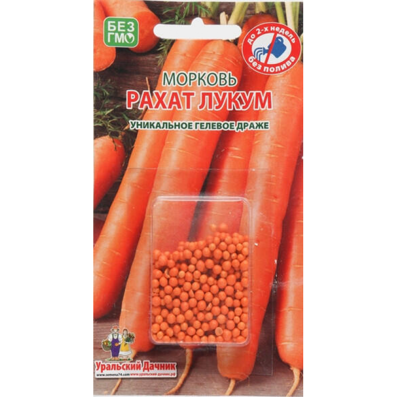 Морковь РАХАТ ЛУКУМ - среднеспелый суперсладкий сорт с превосходными вкусовыми качествами. Пучковая спелость наступает уже на 50-й день, а полный урожай готов к уборке через 90-100 дней. Корнеплоды цилиндрической формы, тупоконечные, длиной 16-18 см и массой 100-190 г, полностью погружены в почву, что предотвращает позеленение как снаружи, так и внутри. Мякоть красно-оранжевая, сочная, с маленькой сердцевиной и высоким содержанием полезных веществ: сухого вещества - 13,7%, сахара - 7,2%, β-каротина - до 20 мг%. Сорт демонстрирует устойчивость к растрескиванию и цветушности, что обеспечивает отличную товарность и лёжкость корнеплодов. По урожайности значительно превосходит популярный стандартный сорт Нантская 4. Семена представлены в инновационной оболочке драже из гидрогеля и природных минералов, которая удерживает влагу и создает идеальные условия для проращивания, позволяя забыть о поливе до 10 дней после посадки.
