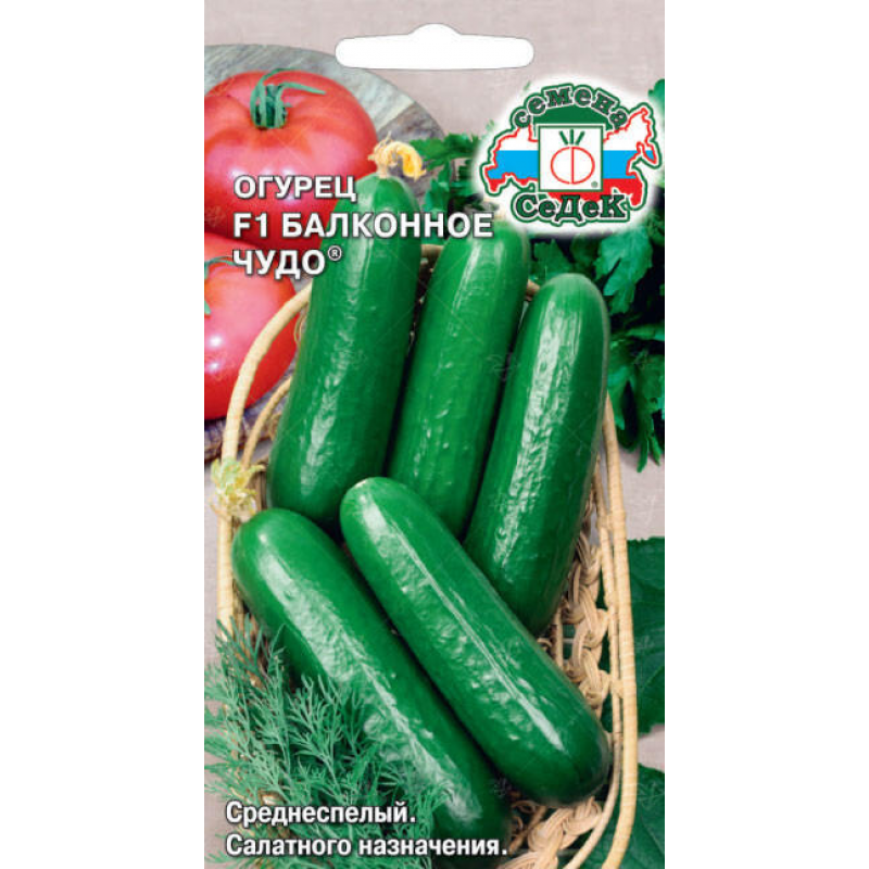 Среднеспелый партенокарпический гибрид огурца Балконное Чудо F1 специально создан для выращивания в теплицах, пленочных укрытиях и на балконах. Срок созревания составляет 50-55 дней от всходов. Растение среднерослое, слабоплетистое, что делает его идеальным для ограниченного пространства. Особенностью гибрида является пучковое расположение завязей - в каждом узле формируется до 3-4 зеленцов одновременно. Плоды гладкие, насыщенного зеленого цвета, длиной 8-10 см и массой около 80 г. Огурцы отличаются прекрасным ароматом, сладким вкусом и хрустящей сочной мякотью. Урожайность достигает 8-9 кг с квадратного метра. Гибрид обладает устойчивостью к мучнистой росе и высокой завязываемостью плодов даже в стрессовых условиях, что позволяет получать ранний урожай весной. Идеально подходит для выращивания на балконах, лоджиях и в небольших теплицах.