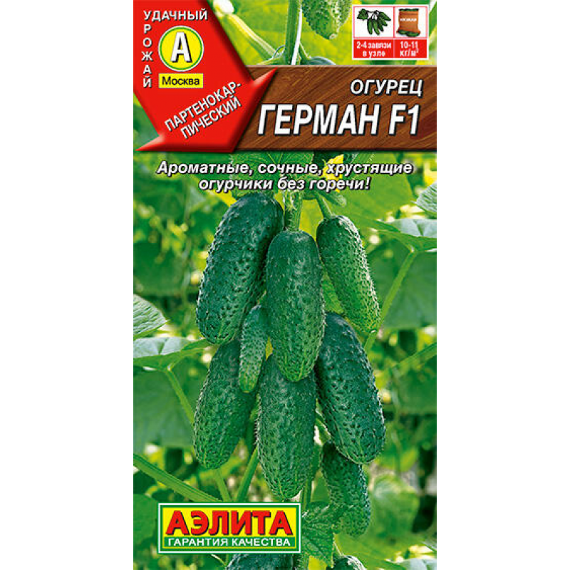 Популярный ультраскороспелый партенокарпический гибрид для открытого грунта и пленочных укрытий. От всходов до первого сбора зеленцов – 38-42 дня. Растения среднерослые, с пучковым расположением завязей. Огурчики длиной 8-9 см, замечательного вкуса как в свежем, так и в консервированном виде. Устойчив к ряду болезней. Урожайность в теплице 10-11 кг/м2.