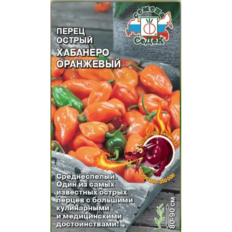 Среднеспелый сорт перца Хабанеро Оранжевый от компании Седек - это мексиканский жгучий перец, который станет настоящей находкой для любителей острых ощущений. Сорт созревает за 110-115 дней и идеально подходит для выращивания в теплицах и пленочных укрытиях. Растение прямостоячее, мощное, достигает высоты 80-90 см, что делает его удобным для культивации. Плоды имеют оригинальную морщинистую форму, напоминающую фонарики, длиной 4-5 см и шириной 2-3 см, массой 30-50 грамм. В технической спелости они ярко-зеленые, а при полном созревании приобретают насыщенный оранжевый цвет. Главная особенность этого перца - исключительная острота по шкале Сковилла от 200000 до 350000 единиц, что делает его одним из самых жгучих перцев в мире. При этом он обладает ярко выраженным перечным вкусом и ароматом. Сорт отличается высокой урожайностью - с одного куста можно собрать более 900 плодов, а также продолжительным и обильным плодоношением. Перец Хабанеро является основным ингредиентом знаменитых соусов Табаско и Сальса, что подтверждает его кулинарную ценность.