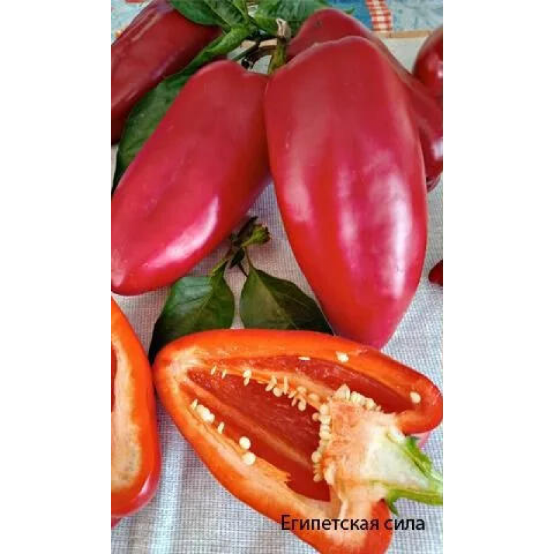 Плоды широкотреугольной формы, как египетские пирамиды, массой 130-150 г, некрупные, но увесистые за счёт толстой и мясистой стенки, толщина которой достигает 1 см. Раннее и дружное плодоношение удивит вас и ваших домочадцев. Уже в июне на вашем столе будут красоваться невероятно сладкие, сочные и ароматные плоды, цвет которых в процессе созревания будет меняться от светло-зелёного до ярко-красного. Сорт Египетская сила является предметом особой гордости селекционеров, так как является уникальным по содержанию аскорбиновой кислоты – 198 мг/100 г сырого продукта. Этот рекордный показатель наряду с высоким содержанием каротина, сахаров и других биологически активных веществ делает этот сорт ценным и незаменимым для оздоровительного питания. Салаты, кетчупы, соусы и лечо, приготов ленные из плодов этого сорта, помогут поддержать силы и укрепить здоровье!