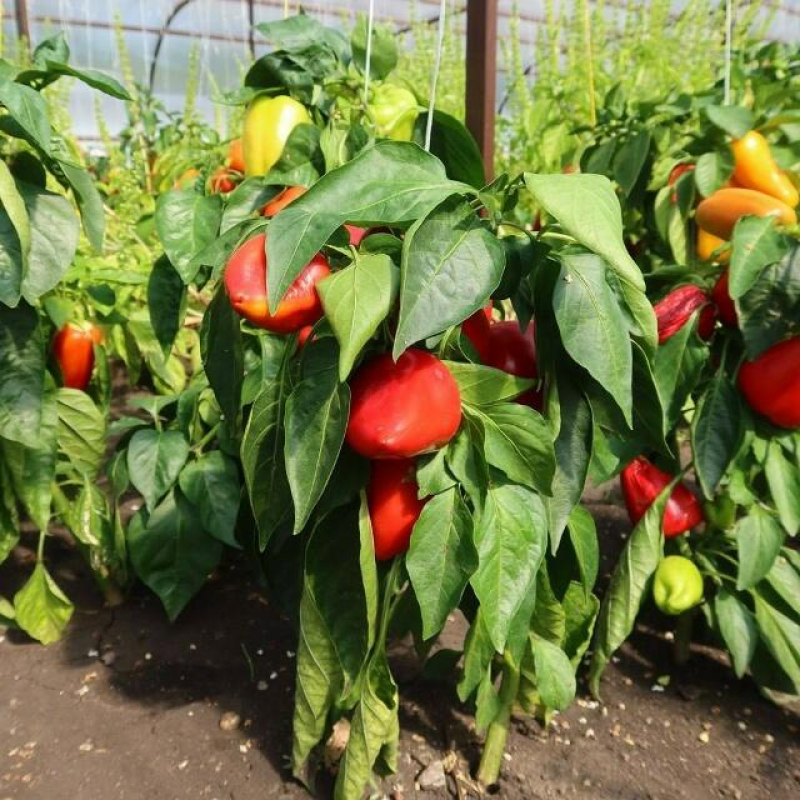 Этот перец-красавчик поражает своей обильностью, неприхотливостью и изумительным вкусом! Раннеспелый, от всходов до массового плодоношения всего 96-98 дней. Растения не представляют сложного ухода, они компактные, средней облиственности, высотой 45-55 см с укороченными междоузлиями. Устойчивость к резким перепадам температур и влажности, а также к основным болезням помогают получить экологически чистый урожай без химических обработок.