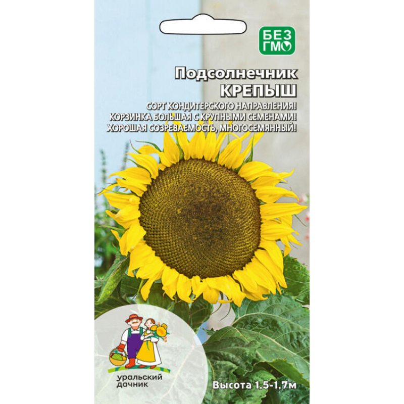 Подсолнечник КРЕПЫШ - раннеспелый сорт кондитерского направления с периодом от всходов до уборочной спелости всего 90-95 дней. Растение высокорослое, достигает 1,5-1,7 метров в высоту, без ветвления, что обеспечивает удобство в уходе и сборке урожая. Корзинка большая, плоская, с крупными овально-удлинёнными семенами черного цвета, ровными и качественными. Сорт отличается хорошей созреваемостью и многосемянностью, что гарантирует обильный урожай. Ценность сорта заключается в устойчивости к мучнистой росе, выравненности растений по высоте, дружности цветения и отличном качестве семян. Семена содержат высокий процент жира и белка, что делает их особенно ценными для кондитерского использования. Подсолнечник КРЕПЫШ также является прекрасным медоносом, привлекающим пчел и других опылителей в ваш сад. Идеально подходит для выращивания на приусадебных участках и в фермерских хозяйствах.