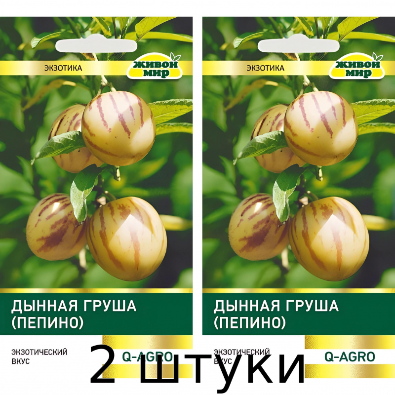 Пепино - экзотический тропический многолетник семейства пасленовые, который в средней полосе выращивается как однолетник в теплицах или в домашних условиях в горшках от 10 литров. Растение достигает высоты до 1,5 метров и требует обязательной досветки при раннем посеве семян. Формируется пасынкованием в 1-2 стебля с обязательной установкой опоры. Культура очень требовательна к освещению и теплу. Плоды имеют красивый лимонный или кремовый окрас с гладкой блестящей поверхностью. Мякоть светло-желтая, сочная, сладкая с нежным дынным ароматом, который делает этот фрукт особенно привлекательным. Масса плодов достигает 1,3 кг, что позволяет получить обильный урожай с каждого растения. Плоды содержат витамин А и аскорбиновую кислоту, что делает их не только вкусными, но и полезными для здоровья. Идеально подходят для употребления в свежем виде, приготовления варенья, джемов и десертов. Семена от проверенного производителя Q-Agro гарантируют хорошую всхожесть и соответствие сортовым характеристикам.