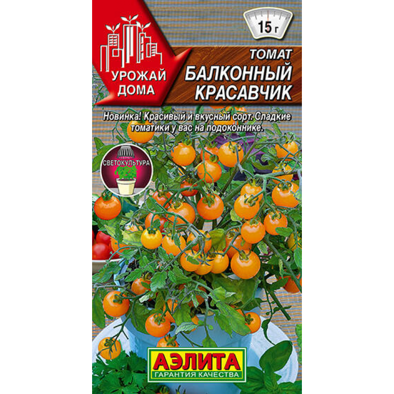 Томат Балконный красавчик - идеальный сорт для выращивания на солнечных подоконниках и балконах. Это раннеспелый сорт, первые плоды созревают уже на 105-110 день после всходов. Компактные кустики высотой всего 20-25 см обильно усыпаны миниатюрными томатиками массой 10-15 г каждый. Плоды отличаются превосходным вкусом - они сладкие, сочные и ароматные. Особенность этих желтых томатов в том, что они не вызывают аллергических реакций, в отличие от красных сортов, и считаются диетическими. Сорт прекрасно подходит для выращивания в открытом грунте и под пленочными укрытиями, но особенно раскрывает свой потенциал в домашних условиях. Растения не требуют сложного формирования, что делает их идеальными для начинающих садоводов. Томаты Балконный красавчик не только дают вкусный урожай, но и служат прекрасным декоративным элементом, украшая ваш дом или балкон.