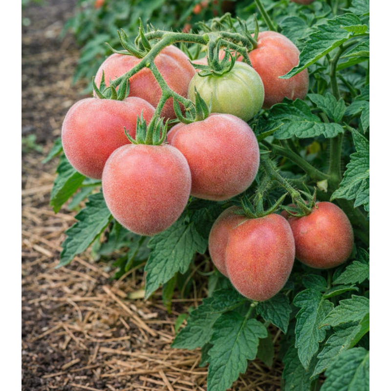 Эксклюзивный скороспелый индетерминантный сорт томатов с уникальными бархатистыми плодами и листьями. От всходов до сбора первого урожая проходит всего 100-105 дней, что делает этот сорт одним из самых ранних среди индетерминантных разновидностей. Плоды обладают необычной пушистой поверхностью, напоминающей абрикосы, массой 100-110 грамм, а отдельные экземпляры могут достигать 200 грамм. Томаты собраны в обильные кисти по 8-10 штук в каждой, обеспечивая высокую урожайность с каждого растения. Сорт демонстрирует отличную устойчивость к комплексу основных болезней томатов и толерантность к фитофторозу. Особенностью сорта является природная защита - опушенные плоды и листья создают естественный барьер против поражения вредителями, что снижает необходимость в химических обработках. Идеальный выбор для тех, кто ценит не только урожайность, но и декоративные качества растений.