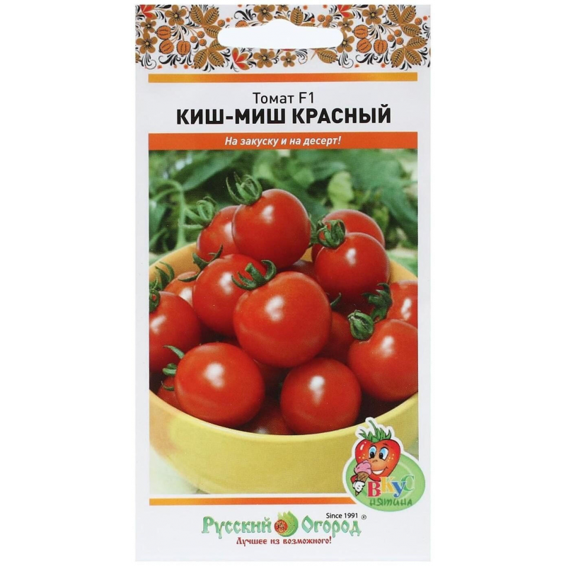 Томат Киш-Миш Красный F1 черри - это великолепный гибридный сорт, который порадует вас обильным урожаем сладких миниатюрных плодов. Каждый томатик весит около 15 грамм и имеет насыщенный красный цвет. Сорт индетерминантный, среднеспелый, с высокой устойчивостью к основным заболеваниям: вирусу табачной мозаики, фузариозу, вертициллезу и нематоде. Плоды собраны в сложные кисти по 30-40 штук, создавая эффектные грозди, которые станут украшением вашего огорода. Томаты отличаются сладким десертным вкусом, идеально подходят для свежего потребления, украшения блюд, консервирования и приготовления салатов. Особенность сорта - слабая склонность к растрескиванию после созревания, что позволяет сохранять товарный вид плодов дольше. Упаковка содержит 20 семян высокого качества от производителя НК, гарантирующих хорошую всхожесть и здоровую рассаду. Этот сорт отлично подходит как для опытных огородников, так и для начинающих, благодаря своей неприхотливости и устойчивости к болезням.