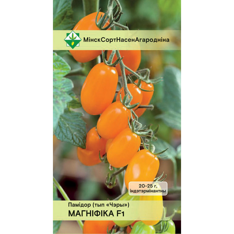Ранний гибридный томат Магнифика F1 - это высокоурожайный сорт индетерминантного типа, достигающий высоты около 1,5 метров. Растение формирует красивые кисти с 15-20 плодами привлекательного янтарно-оранжевого цвета. Плоды цилиндрической формы, массой 20-25 грамм, отличаются отличным сладким вкусом и сочной мякотью. Гибрид характеризуется высокой завязываемостью плодов даже при неблагоприятных погодных условиях, что обеспечивает стабильный урожай. Срок созревания - ранний, сбор урожая происходит с середины июля до конца сентября. Томат предназначен для выращивания в защищенном грунте (теплицах, парниках). Рекомендуемая схема посадки - 70х50 см. Семена проверены на качество и соответствуют стандартам. Идеальный выбор для тех, кто ценит ранние урожаи, декоративность плодов и надежность гибрида.